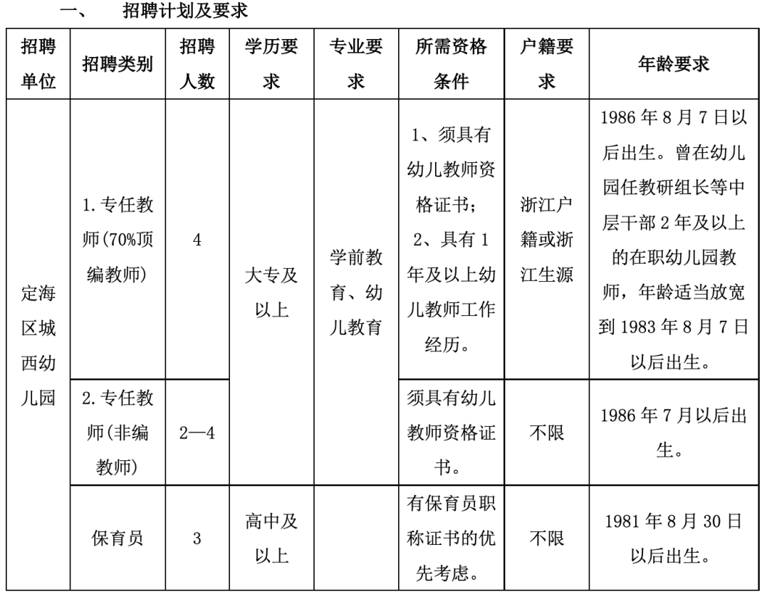 根据《舟山市定海区公办幼儿园编外人员管理办法》(定教发【2018】14号)要求,结合各幼儿园实际情况,特制订舟山市定海区城西幼儿园2021年度幼儿园教职工招聘公告。具体如下: