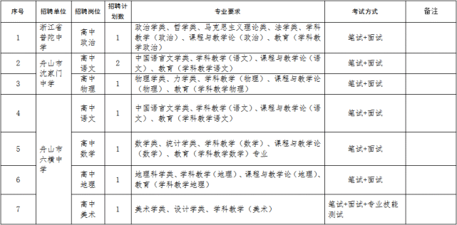 考试工作由舟山市教育局会同各招聘学校组织实施。