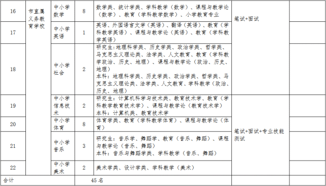 舟山技师学院的中职语文与中职数学两个岗位的考试形式为面试,其他岗位考试形式为笔试、面试相结合的方式,报考高中美术、动漫与游戏制作、中职音乐、中职舞蹈、中小学信息技术、中小学体育、中小学音乐、中小学美术岗位的,还需增加专业技能测试。