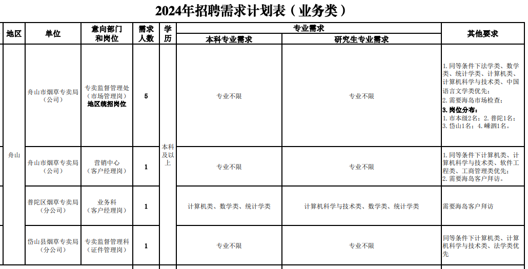 本次共计招聘196人,其中舟山招聘10人。