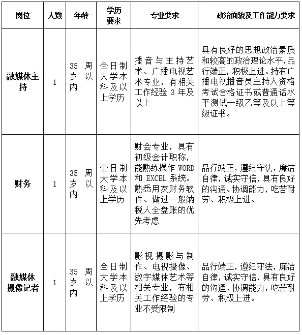 舟山市传媒集团有限公司因事业发展需要,面向社会公开招聘3名工作人员(集团聘用性质)