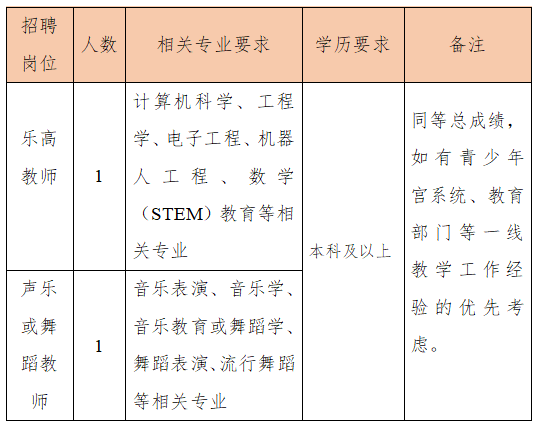 5、同等总成绩,如有青少年宫系统、教育部门等一线教学工作经验的优先考虑。