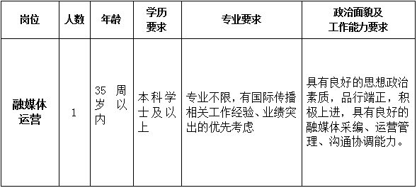 舟山市传媒集团有限公司因事业发展需要,面向社会公开招聘1名员工(劳务派遣性质),具体要求如下: